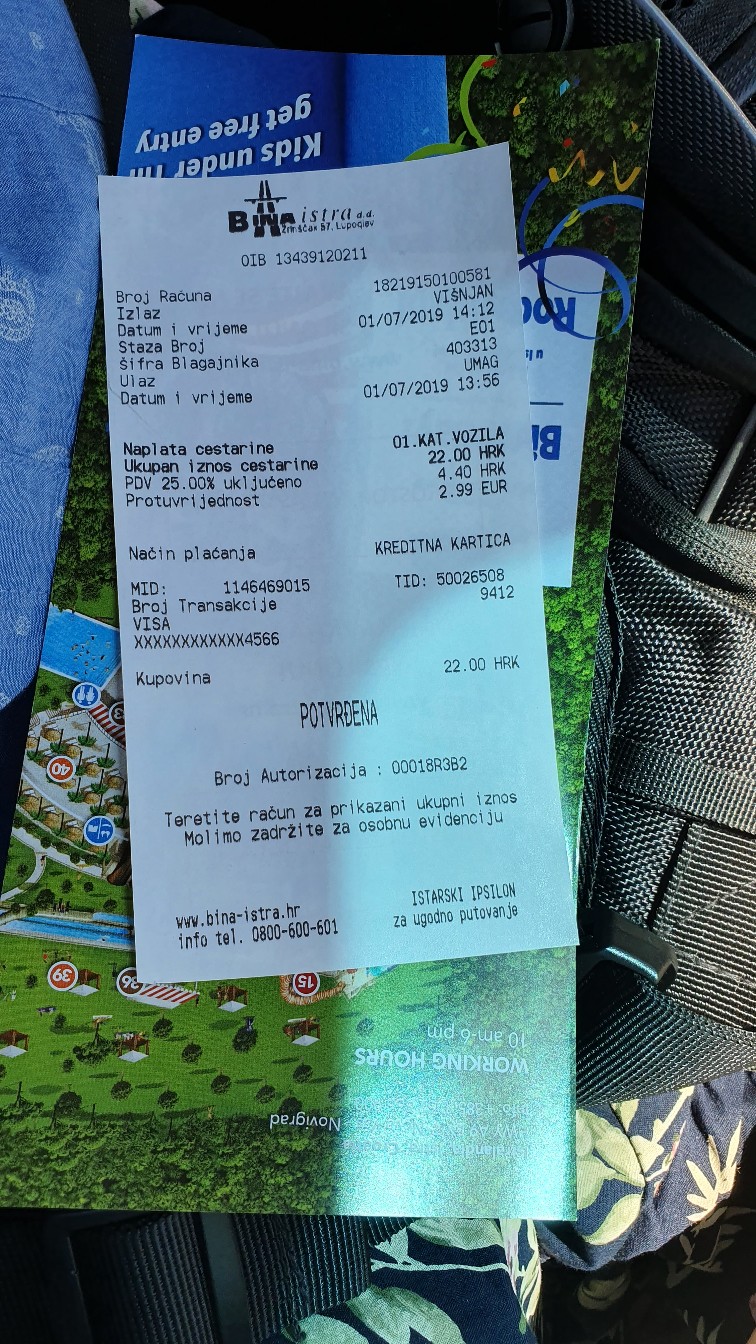 Проехали мы там всего ничего и заплатили 22 куны (для перевода в рубли умножать на 10, для перевода в чешские кроны на 3,4)