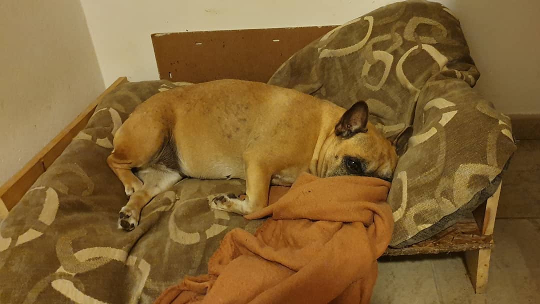 Убралась на кухне, выхожу в коридор, а там собака спать пытается :) а вкусные запахи спать не дают...